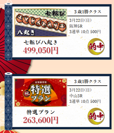 長年の実績を客観的に評価し、本当に信頼できると判断された人だけが予想を提供しています。