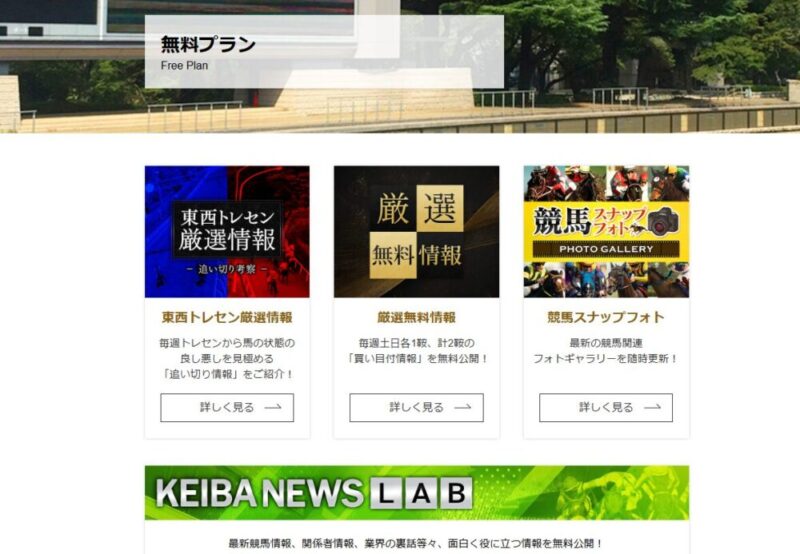 加えて、東西トレセン情報や競馬ニュースなど無料コンテンツも充実。
