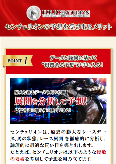 センチュリオンはスマホ・PC両方対応の競馬予想サイトです。その特徴を見ていきましょう。