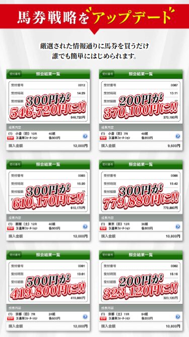 管理人も実際に使っていますが、安心して利用できる上に、的中率はトップクラス!副収入を得るなら絶対おすすめ!