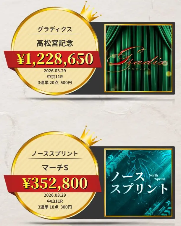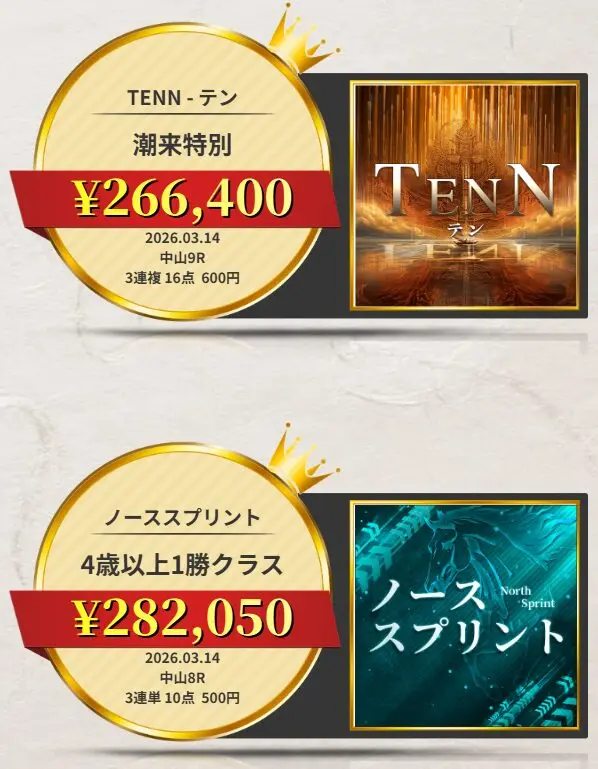土日は4鞍以上の無料買い目も公開されるので、まずは気軽に試せるのも魅力です。