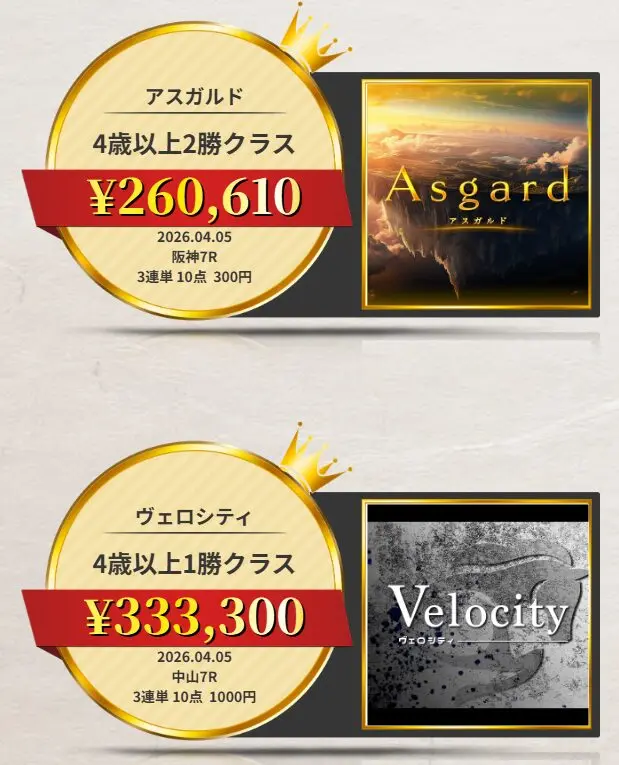 自力で予想を楽しんでいる方も、他の予想サイトを使っている方も、情報は多ければ勝率は格段にUP間違いなし!!簡単に登録でき、即無料予想が受け取れるので勝負前に是非登録してみてください。