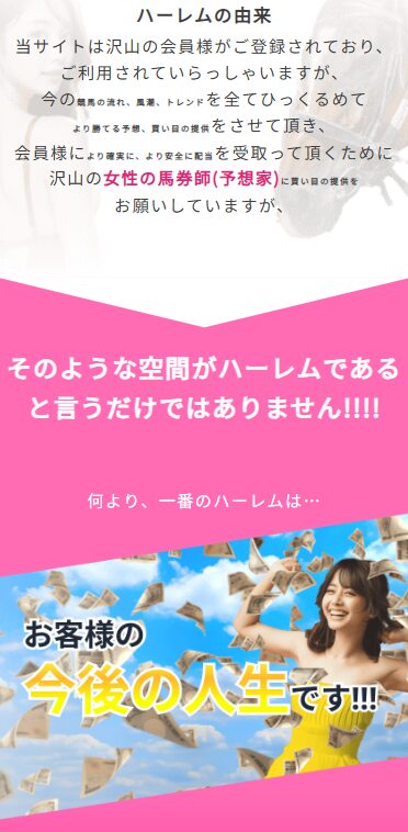 ハーレム競馬は、男性馬券師が多い中、女性の馬券師ばかりが在籍している競馬予想サイト。