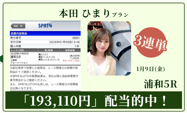 先週は不的中だったけど、今週は土曜日から的中でたのでホッとしました。
