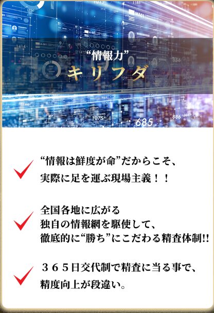 こうした徹底ぶりが、他とは一線を画す的中精度につながっているわけです。