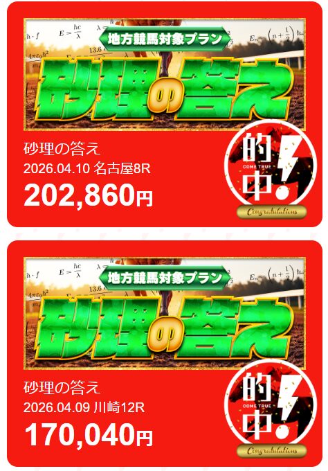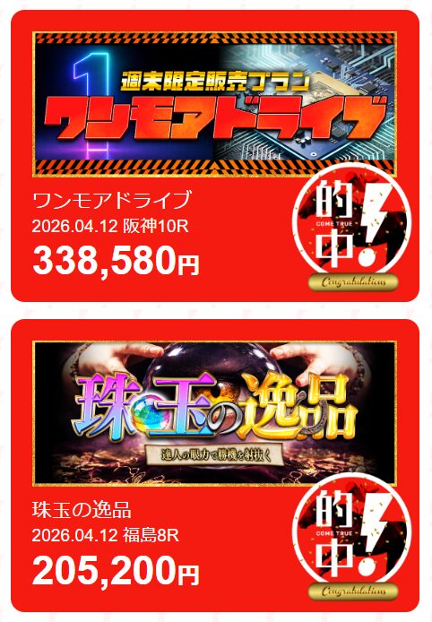 自力で予想を楽しんでいる方も、他の予想サイトを使っている方も、情報は多ければ勝率は格段にUP間違いなし!!簡単に登録でき、即無料予想が受け取れるので勝負前に是非登録してみてください。