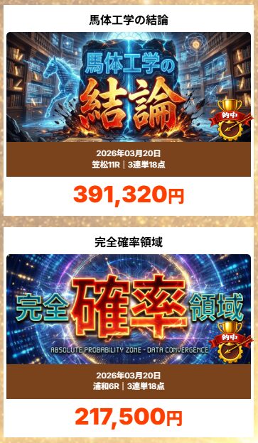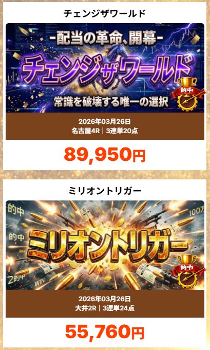 自力で予想を楽しんでいる方も、他の予想サイトを使っている方も、情報は多ければ勝率は格段にUP間違いなし!!簡単に登録でき、即無料予想が受け取れるので勝負前に是非登録してみてください。