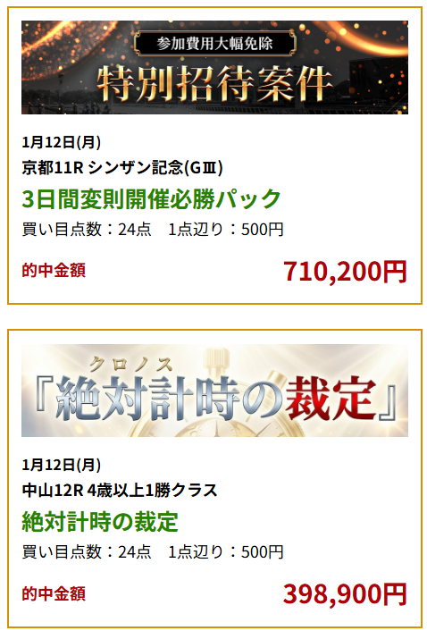 まずは無料の買い目から、その実力を体感してみてください。