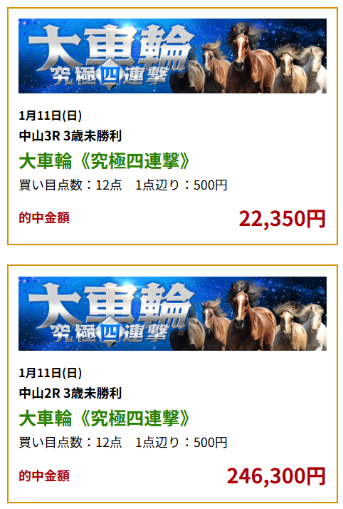 日曜劇場のロイヤルファミリーが好きで、昔中央競馬の馬券を買った事がある程度だったけど、毎日地方競馬で勝ち続けてるおかげで、すっかり競馬の大ファンになった。ありがとうございます。今週のマイルチャンピオンシップではこのサイトにお世話になります!
