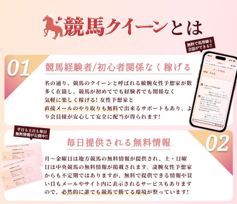 そんな悩みを持つ方に、ぜひ知ってほしいのが「競馬QUEEN」です。