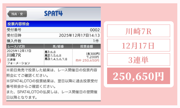250,650円的中!