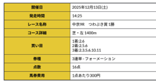 日程:12月13日(土)中京9R