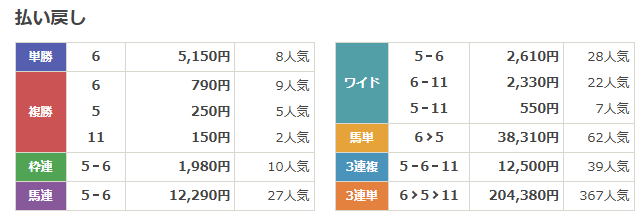 3連単367人気の6>5>11を見事的中。
