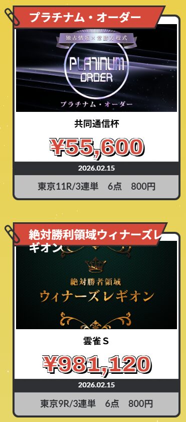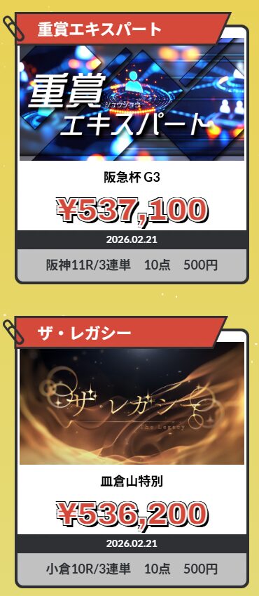 知識ゼロからでも、業界屈指の予想のプロが予想するので高配当を狙えるのが大きなポイントだと思います。