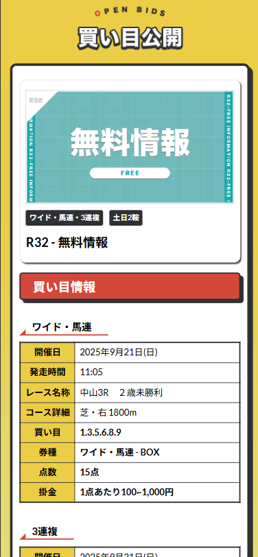 それに、毎週2鞍分の無料予想が提供されているのも嬉しいところ。