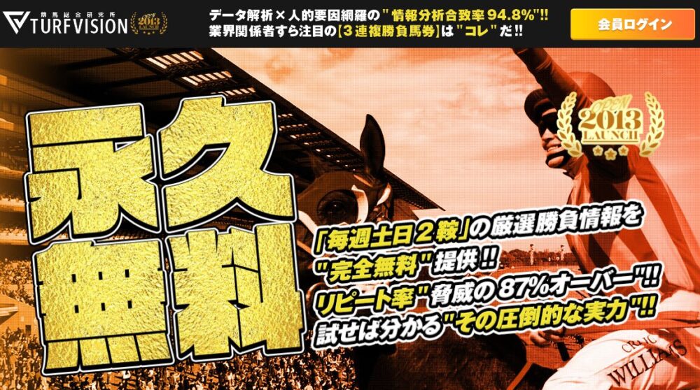 ターフビジョンは、10年以上続く実績のある競馬予想サイトで、リピート率はなんと87%以上。