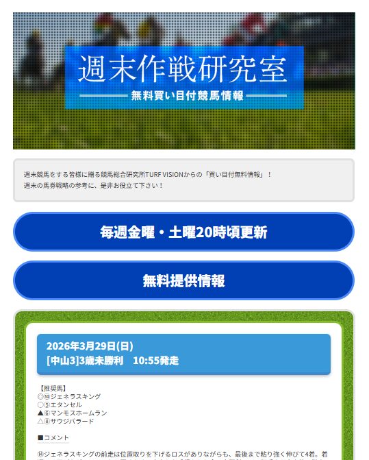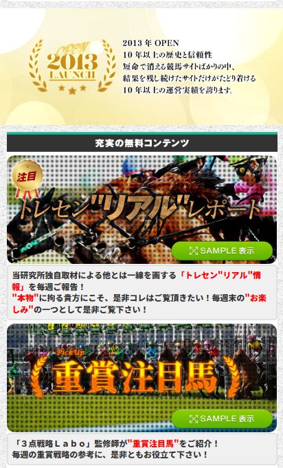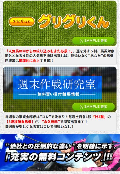 さらに毎週土日は、3連複の勝負馬券を2鞍分無料で入手可能。