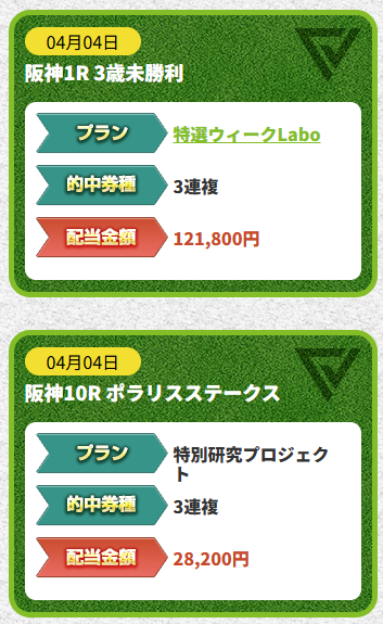 ターフビジョンは無料予想で19週連続的中という実績もあり、無料だからといって手を抜いていないのが伝わってきます。