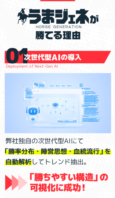 「うまジェネ」の特徴は、次世代AIを活用した分析。