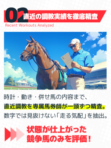 直近の調教内容を、現地で馬券師が一頭ずつ精査。