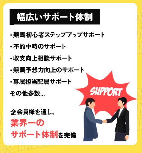初心者向けのステップアップサポート、不的中時のフォロー、収支向上のアドバイスまで用意されているので、安心して続けられます。