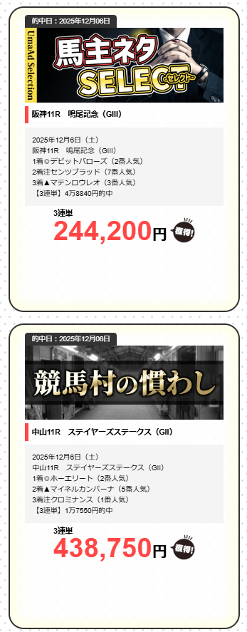 今回紹介した「うまあど」は管理人が検証した結果無料情報の勝率も高いのでまずは無料情報から試して、より稼げる勝率が格段にアップする有料情報に移行するのがおすすめ。