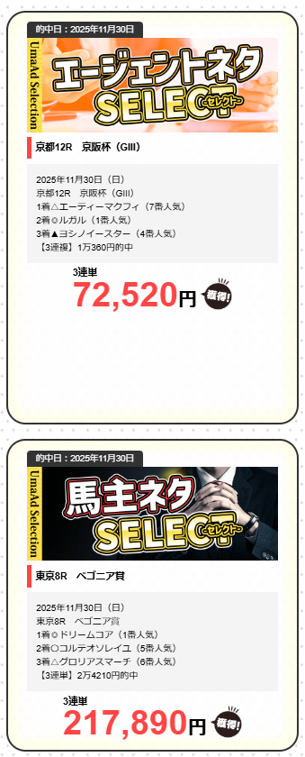 管理人も実際に使っていますが、安心して利用できる上に、的中率はトップクラス!副収入を得るなら絶対おすすめ!