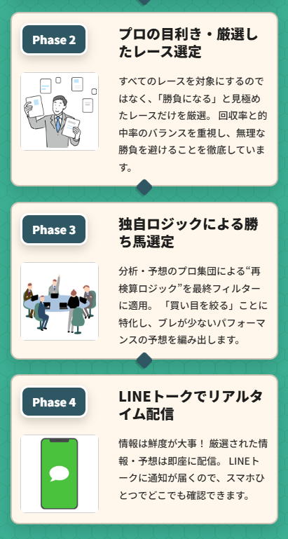 厳選されたレース情報や買い目が毎日配信され、LINEトークでもリアルタイム通知が届くので、どこでも確認可能です。