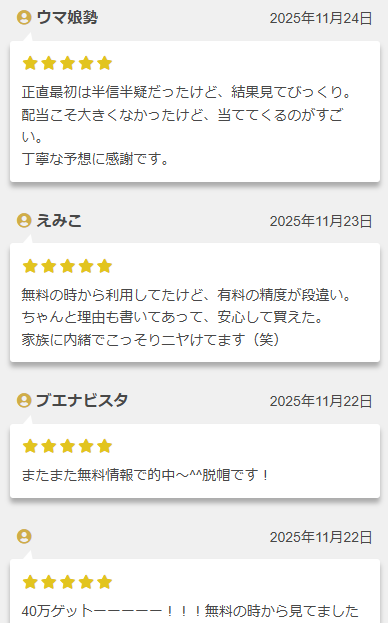管理人も実際に使っていますが、的中率が高いだけでなく、安心して利用できるのも嬉しい所。